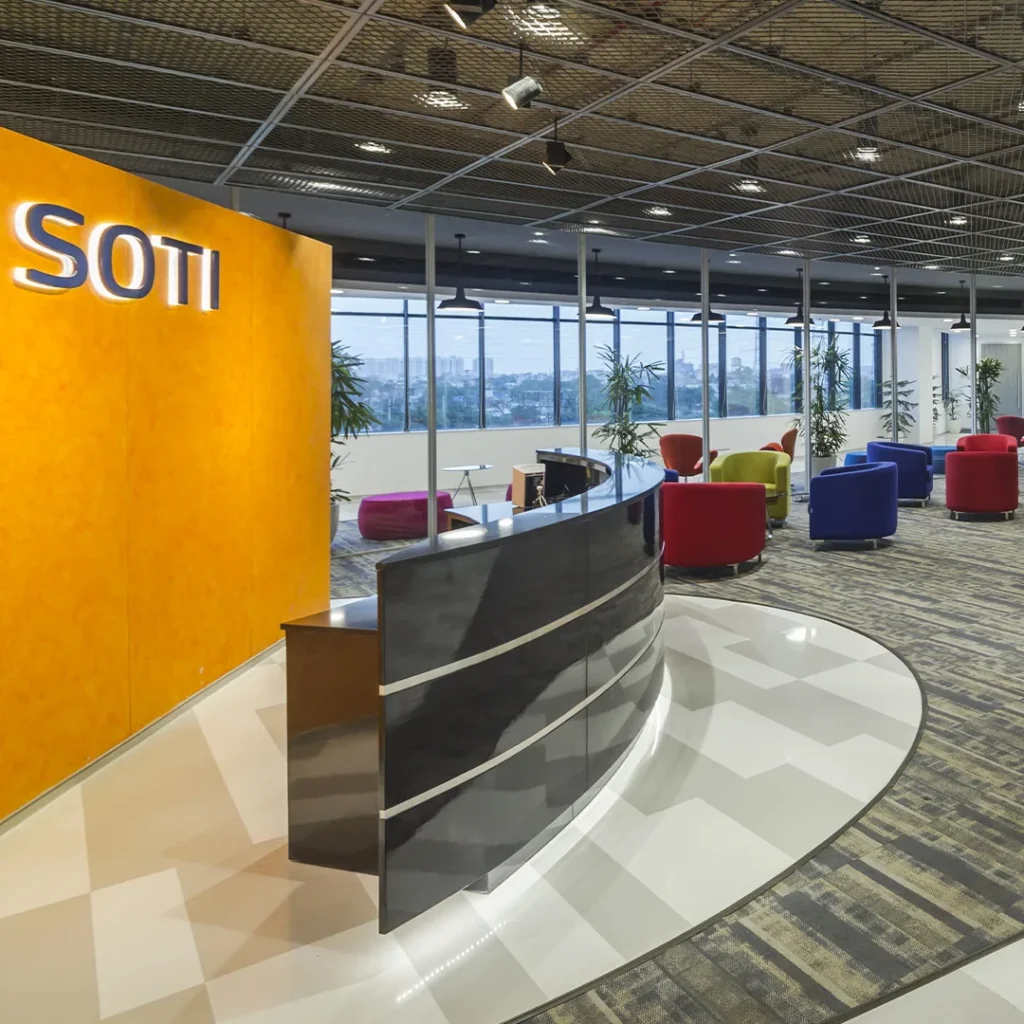 Our team designed the Asia headquarters of SOTI Inc. to support over 450 employees within a dynamic, future-ready workplace. Built around the theme “Workspace for Innovation,” the office encourages collaboration, learning, and creativity at every level.